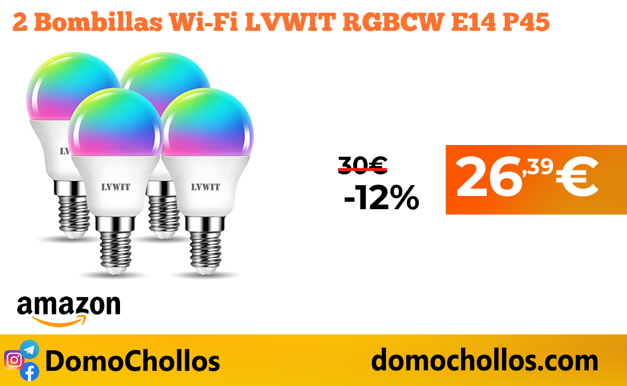 ❇ 2 Bombillas Wi-Fi LVWIT RGBCW E14 P45