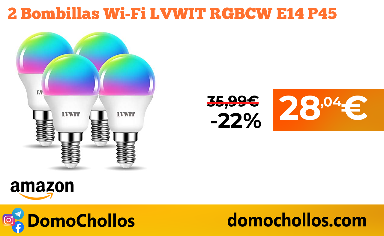 ❇ 2 Bombillas Wi-Fi LVWIT RGBCW E14 P45