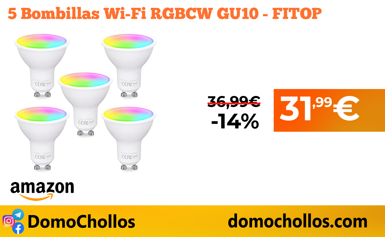 ❇ 5 Bombillas Wi-Fi RGBCW GU10 – FITOP