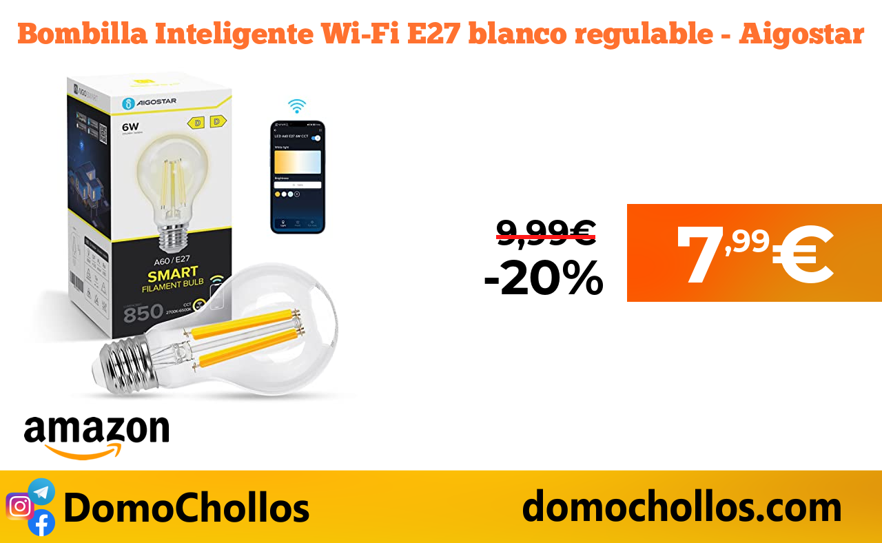 ❇ Bombilla Inteligente Wi-Fi E27 blanco regulable – Aigostar