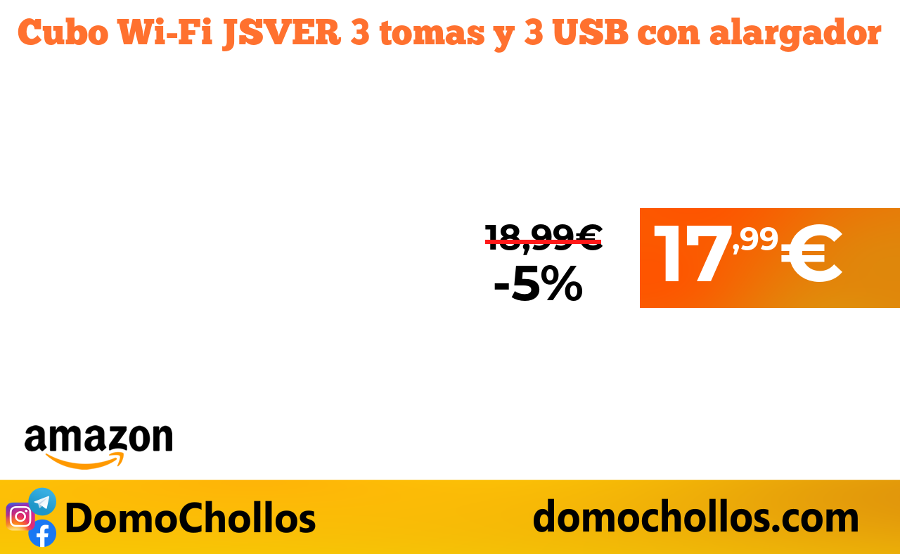 ❇ Cubo Wi-Fi JSVER 3 tomas y 3 USB con alargador