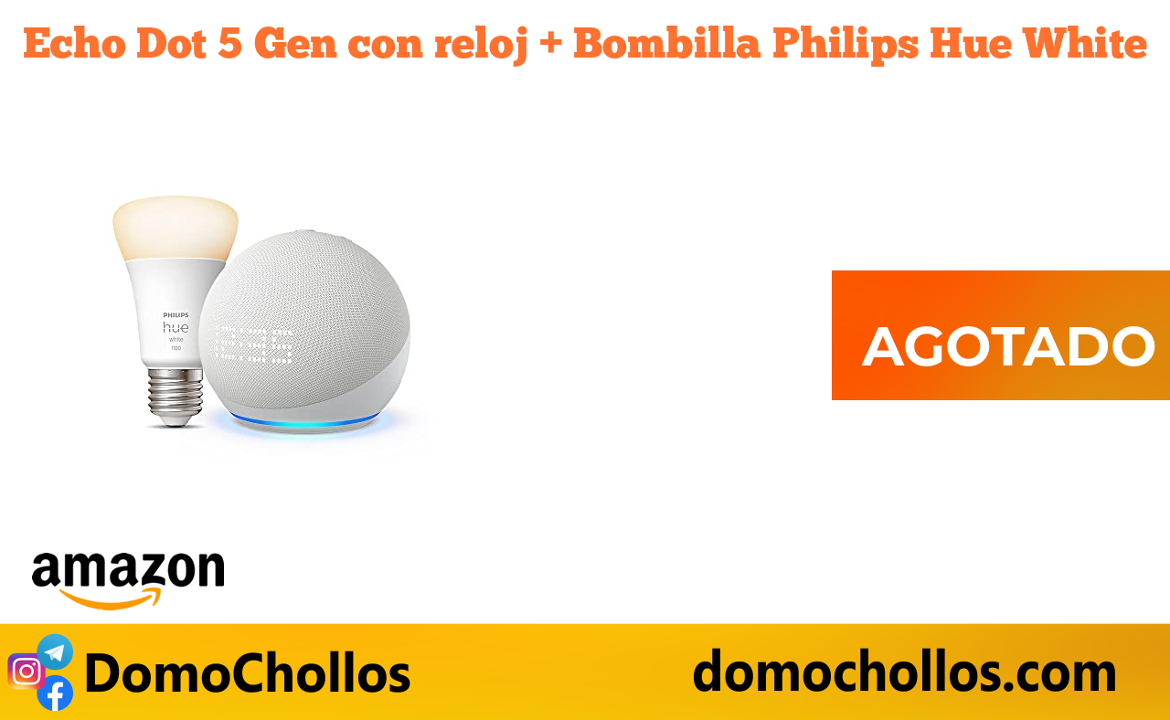 Echo Dot 5ªGen con reloj + Bombilla Philips Hue White